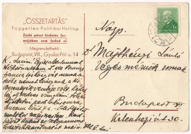 1937 Testvér! Védekezz a mérgező sajtó ellen! "Összetartás" ... https://www.darabanth.com/en/419-Online-auction/419.0/Postcards/Judaica~1500032/1937-Testver-Vedekezz-a-mergezo-sajto-ellen-Osszetartas-Fuggetlen-Politikai-Hirlap-anti~II2648875