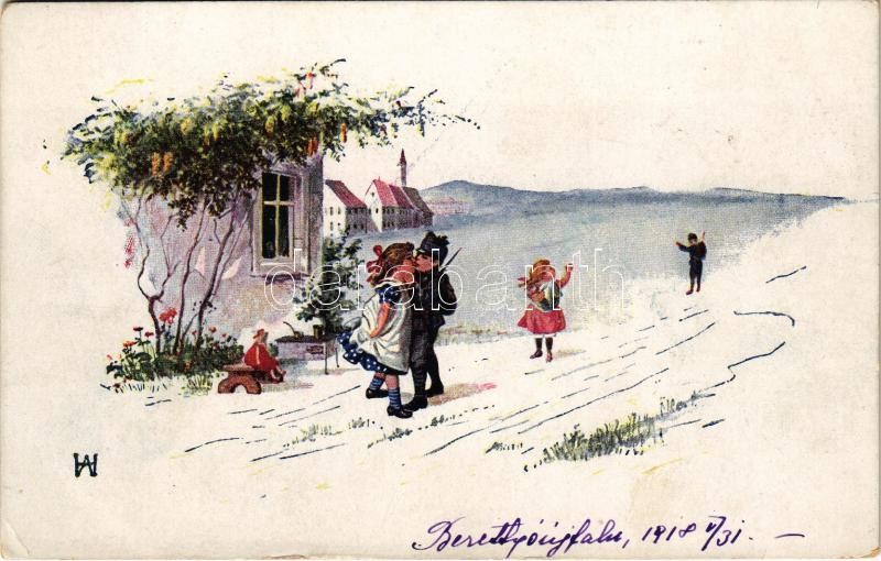 1918 Muß ich denn, muß ich denn zum Städtle hinaus / Louceni, louceni / WWI Austro-Hungarian K.u.K. military art postcard, soldier's farewell (EK)