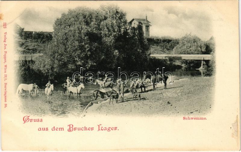 Királyhida, Bruckújfalu Tábor, Brucker Lager, Bruckneudorf; Gruss aus dem Brucker Lager! Schwemme / Austro-Hungarian K.u.K. military, swimming horses (r)