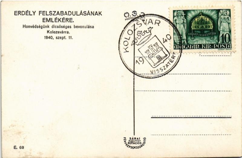 1940 Kolozsvár, Cluj; bevonulás / entry of the Hungarian troops + "1940 Kolozsvár visszatért" So. Stpl. (fl)