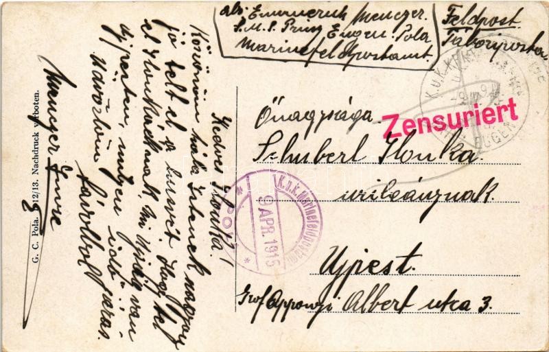 1915 Zerstörer in voller Fahrt / SMS Huszár az Osztrák-Magyar Haditengerészet Huszár-osztályú rombolója teljes gőzzel. G. C. Pola 1912/13. / WWI Austro-Hungarian Navy, K.u.K. Kriegsmarine, Huszár-class destroyer + "K.U.K. KRIEGSMARINE SMS PRINZ EUGEN" (EK)