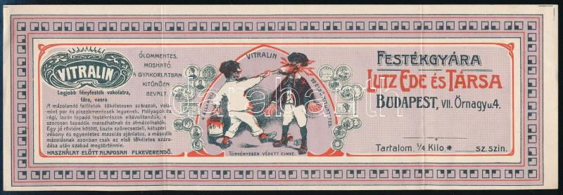 Vitralin festék - Lutz Ede Festékgyára Budapest címke, hajtott, 7,5×22 cm