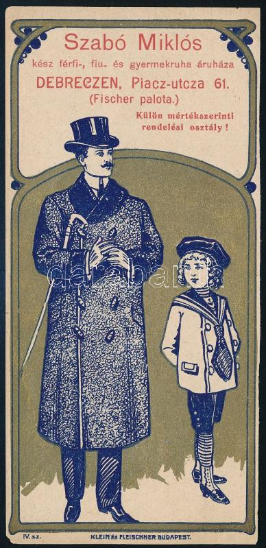 cca 1920 Szabó Miklós Debrecen, Piac utca, Fischer Palota, férfiruha s...
