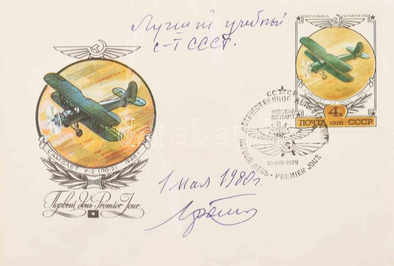 Oleg Konsztantyinovics Antonov (1906-1984) repülőmérnök, autográf dedikálása emlékborítékon / Oleg Konstantinovich Antonov (1906-1984) Soviet autograph signature on special cover