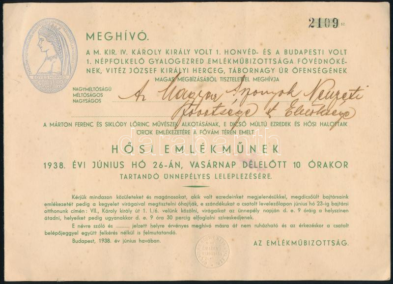 https://www.darabanth.com/en/42-Major-auction/42.1/Art-sculptures-paper-and-other-collectibles/Printed-Materials~17439/1938-A-M-kir-IV-Karoly-volt-1-honved-ezred-hosi-emlekmu-avatasara-szolo-meghivo-a-Magya~II3071594
