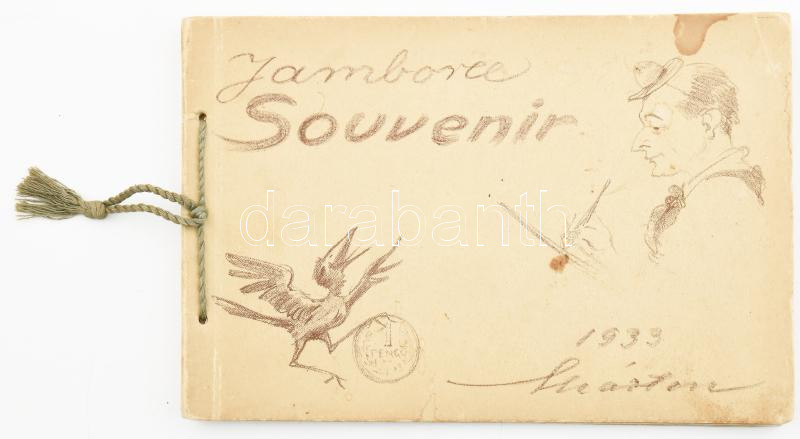 1933 Gödöllő, Jamboree Souvenir, Márton Lajos sokszorosított grafikáit tartalmazó 40 lapos füzet, ofszet, Magyar Földrajzi Intézet, kiadói papírkötésben / 1933 Gödöllő, Jamboree Souvenir, 40 graphics of Lajos Marton, in paper binding 21x14 cm