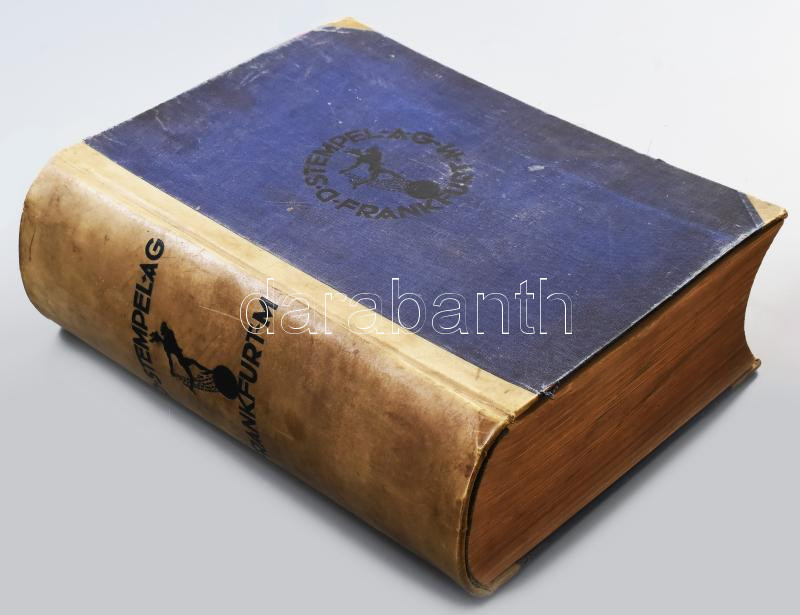 cca 1920-as évek eleje Die Hauptprobe der Schriftgiesserei und Messinglinienfabrik D. Stempel Akt. - Ges. Frankfurt A. Main - Süd. Leipzig - R. und Budapest. Frankfurt A. Main-Süd, én., D. Stempel A.G.,XXVIII+1-68q+69+124+125-281h+219-280+281-300+350+331-350+371-382+423-588+603-864m+865-884+885-944+953-1088+2+1089-1137+1138-1138g+1139-1116+2+1167-1198 p. + 17 t. Német nyelvű tipográfiai témájú kiadvány. Gazdag képanyaggal illusztrált, közte art nouveau-s (szecessziós) és art decos elemekkel is. Az elülső kötéstábla belsején: "Dieses exemplar unserer hauptprobe widmen wir Magyar Kir. Állami Nyomda Budapest." Ezt a példányt főpróbának ajánljuk a Magyar Kir. Állami Nyomda Budapest részére. Kiadói félpergamen-kötés, kopott, kissé foltos borítóval, foltos lapokkal. / cca Early 1920s Die Hauptprobe der Schriftgiesserei und Messinglinienfabrik D. Stempel Akt. - Ges. Frankfurt A. Main - Süd. Leipzig - R. und Budapest. Frankfurt A. Main-Süd, én., D. Stempel A.G.,XXVIII+1-68q+69+124+125-281h+219-280+281-300+350+331-350+371-382+423-588+603-864m+865-884+885-944+953-1088+2+1089-1137+1138-1138g+1139-1116+2+1167-1198 p. + 17 t. In German language. With many illustrations, including art nouveau and art deco illustrations too. With label on the inside of the cover: "Dieses exemplar unserer hauptprobe widmen wir Magyar Kir. Állami Nyomda Budapest." Half-parchment-binding, with worn and little bit spotty cover, and spotty pages.