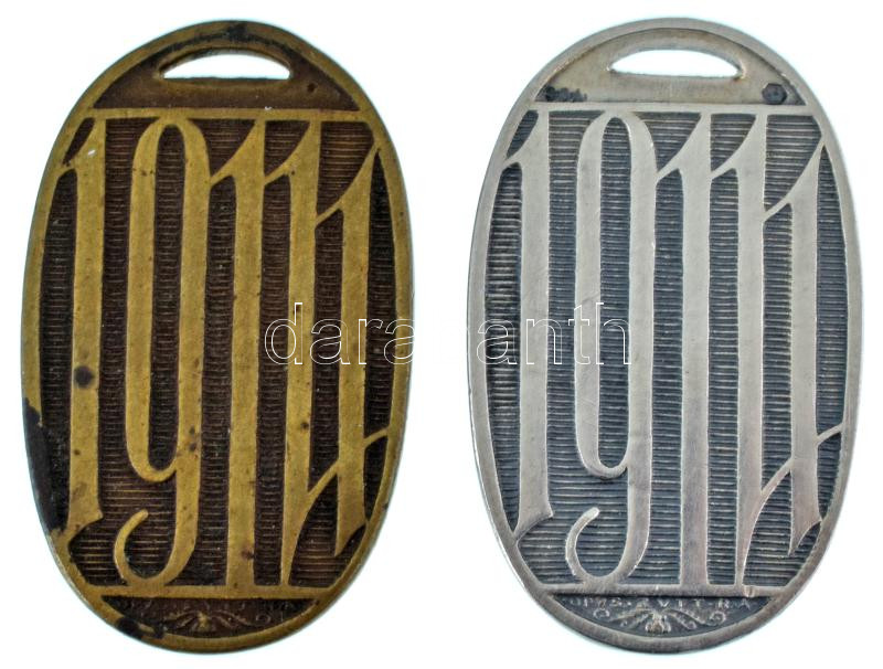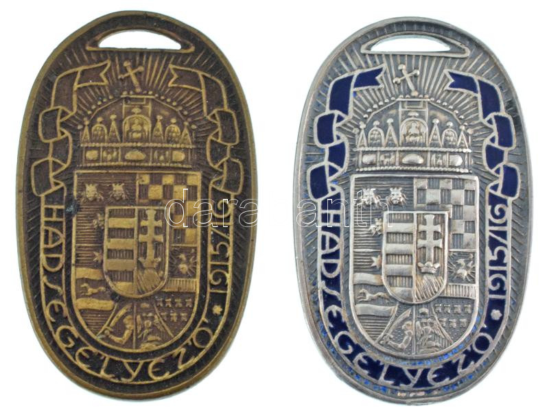 Hungary 1914. "Military Aid 1914" hallmarked commemorative Ag medallion of the Hungarian Military Aid Office, partially enamelled with blue enamel. Sign: Richard Zutt (17,71g/0.800/44x27mm) + "Military Aid 1914" bronze commemorative medallion. Sign.: Richard Zutt (44x27mm) C:AU