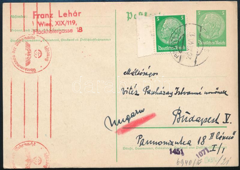 1940 Lehár Ferenc (1870-1948) zeneszerző német nyelvű, autográf levele... https://www.darabanth.com/en/42-Major-auction/42.1/Other-collectibles-Live/Art-collectibles-floor-auction-items~17539/1940-Lehar-Ferenc-1870-1948-zeneszerzo-nemet-nyelvu-autograf-levelezolapja-Paphazy-Istvannenak~II3113826