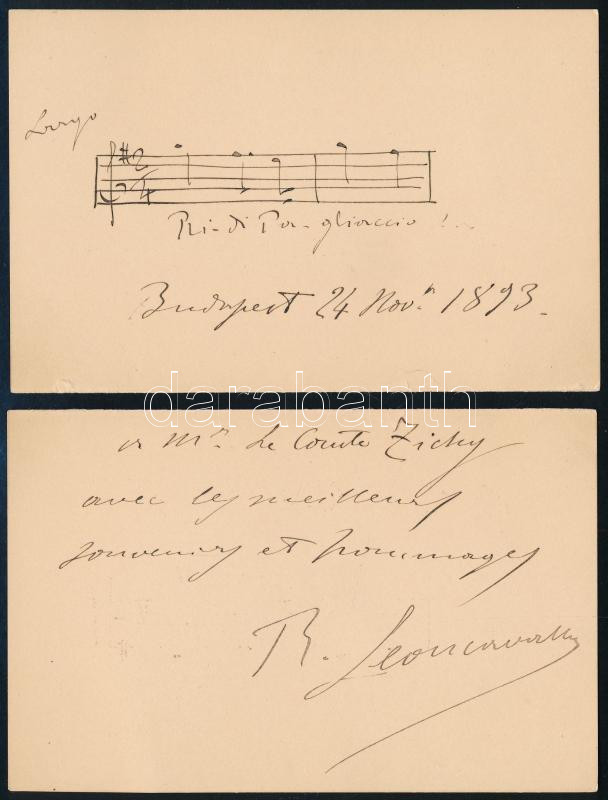 Ruggero Leoncavallo (1857-1919) olasz zeneszerző és zongorista autográ... https://www.darabanth.com/en/42-Major-auction/42.1/Other-collectibles-Live/Art-collectibles-floor-auction-items~17539/Ruggero-Leoncavallo-1857-1919-olasz-zeneszerzo-es-zongorista-autograf-dedikacioja-grof-Zichy~II3055647