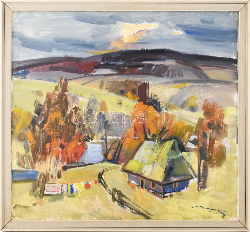 Kassai Antal (1921-1991), kárpátaljai festő: Kárpátaljai táj. Olaj, vá...