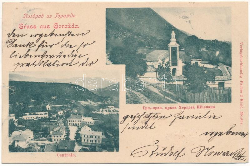 1900 Gorazde, Gorazda; Centrale / general view, Serbian Orthodox churc...