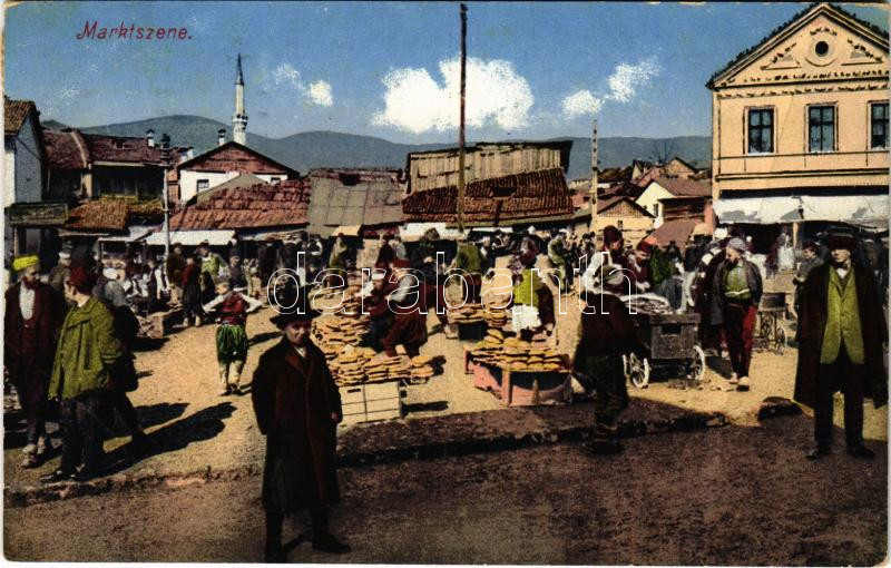 1914 Sarajevo, Marktszene / market + "K. und K. MILIT. POST SARAJEVO"