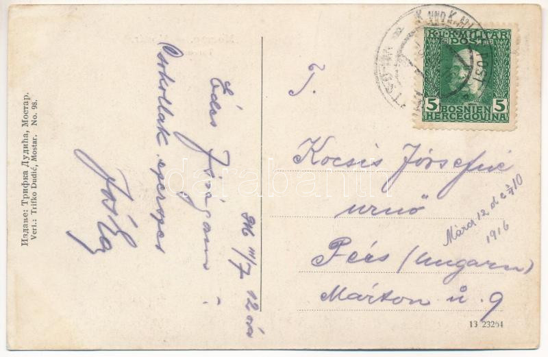 1916 Mostar, Türkenviertel / Turkish district + "K. UND K. MILIT. POST MOSTAR"