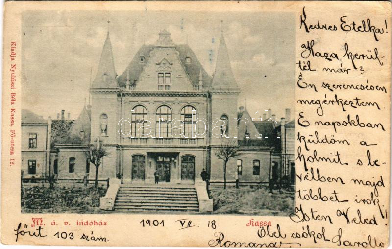 1901 Kassa, Kosice; MÁV indóház, vasútállomás. Nyulászi Béla kiadása / railway station (Rb)