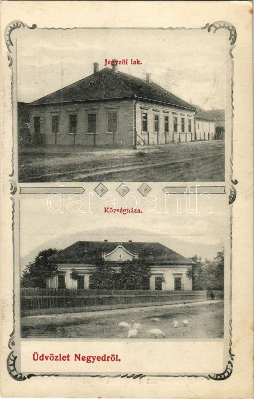 1917 Negyed, Neded; Jegyzői lak és községháza. Ungár Mór fényképész / ...