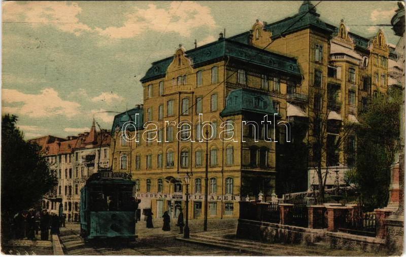 1908 Göteborg, Haga Kyrkogata / street, tram to Lilla Bommen, shop