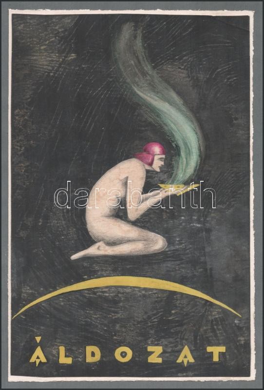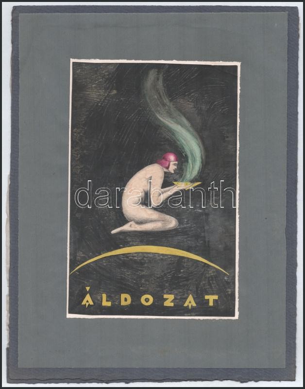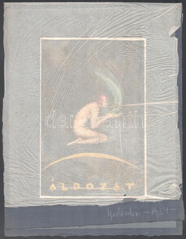 Description: Galambos Margit (?-?): Áldozat, art deco könyvborító- vagy reklámterv, 1924. Tempera, ceruza, papír, papírra kasírozva, jelzett a hártyapapírhoz erősített kartonon, 22x14,5 cm