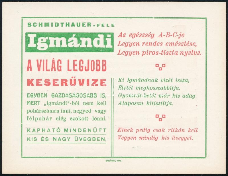 Igmándi kúrák otthon / Igmándi keserűvíz - reklámlap