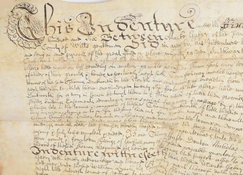 1706 Angol nyelvű birtokügyi szerződés Mark Gabry és William Lynch fel... https://www.darabanth.com/en/420-Online-auction/420.0/Art-and-other-collectibles/Documents~500018/1706-Angol-nyelvu-birtokugyi-szerzodes-Mark-Gabry-es-William-Lynch-felek-kozott-pergamen-vi~II2657143