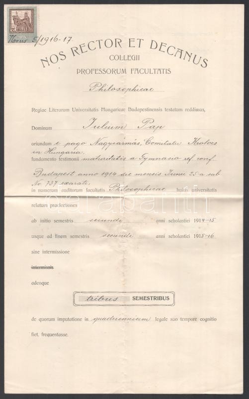https://www.darabanth.com/en/420-Online-auction/420.0/Art-and-other-collectibles/Documents~500018/1916-Egyetemi-bizonyitvany-rektori-es-dekani-alairassal~II2665702
