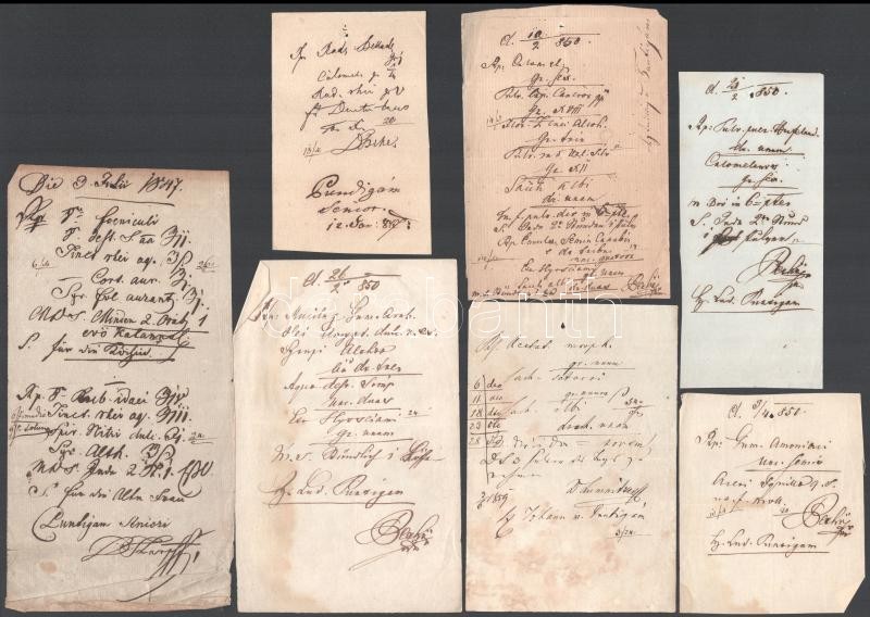cca 1840-1850 Vegyes Gyógyszerészeti számlák és receptek