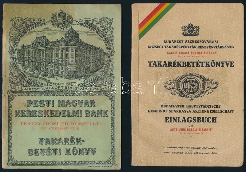 cca 1930-1945 3 db takarékbetétkönyv (Budapest Székesfővárosi Községi Takarékpénztár Rt., Pesti Magyar Kereskedelmi Bank), vegyes állapotban