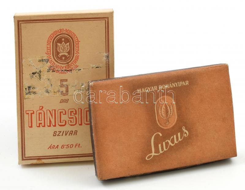2 klf. bontatlan szivar és cigarettadoboz: Táncsics és Luxus márkaneve...