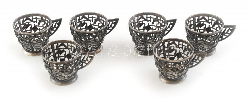 6 db mokkás, fém, pohártartó, kopott, m: 4,5cm