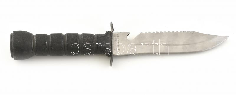 Vadászkés, fém markolattal, hiányzó markolat véggel, h: 27 cm