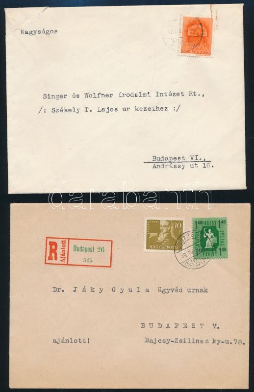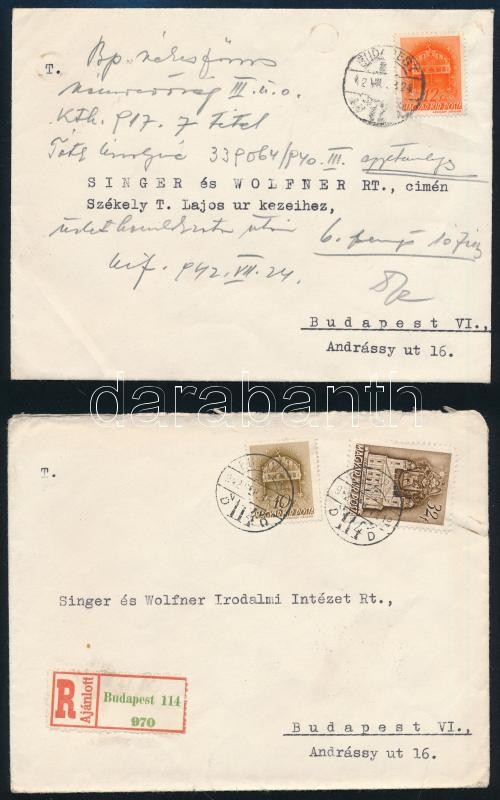 cca 1940-1950 Herczeg Ferenc (1863-1954) író levelezéseiből származó borítékok, 12 db, a Singer és Wolfner könyvkiadó, ill. Dr. Jáky Gyula ügyvéd részére címezve