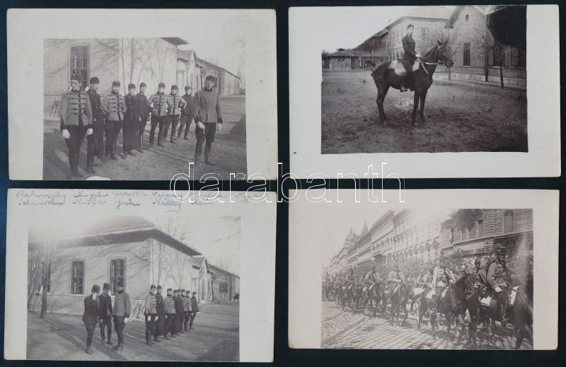 cca 1910-1918 I. világháborús cs. és kir. huszár alakulat, 14 db fotólap, Magyar Imre budapesti fényképész felvételei, közte feliratozottak, 14x9 cm