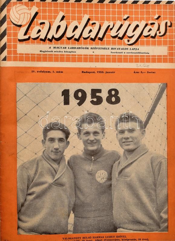 1958 Labdarúgás több száma egybekötve: 1958 IV. évf. 1.,7. sz., 1960 VI. évf. 2-6., 9-10. sz., 1961 VII. évf. 2.,4.,10-12. sz., 1962 VIII. évf. 5.,6. (VB. szám), 7. sz., 1963. IX. évf. 12. sz. Félvászon-kötésben.