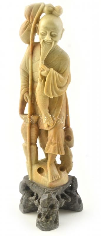 Kínai zsírkő faragvány, jelzés nélkül, jó állapotban, m: 24,5 cm