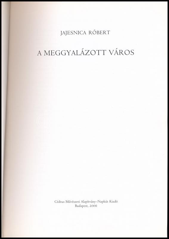 https://www.darabanth.com/en/420-Online-auction/420.0/Books/Books-History~1500007/Jajesnica-Robert-A-meggyalazott-varos-Bp-2006-Cedrus-Muveszeti-Alapitvany-Napkut-Ki~II2665810