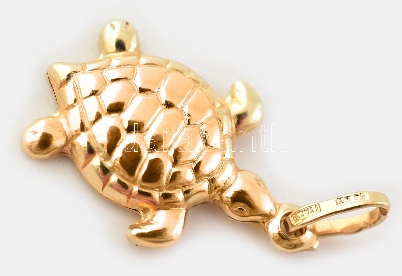 Arany (Au) 14 K teknős függő, jelzett, 2,5×1,4 cm, nettó: 1,4 g