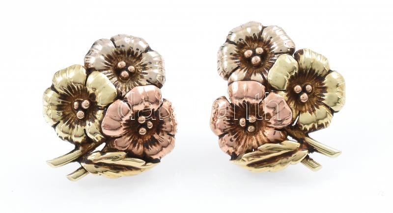 Arany (Au) 14 K virágos fülklipsz, jelzett, 2,1×2 cm, nettó: 6,3 g
