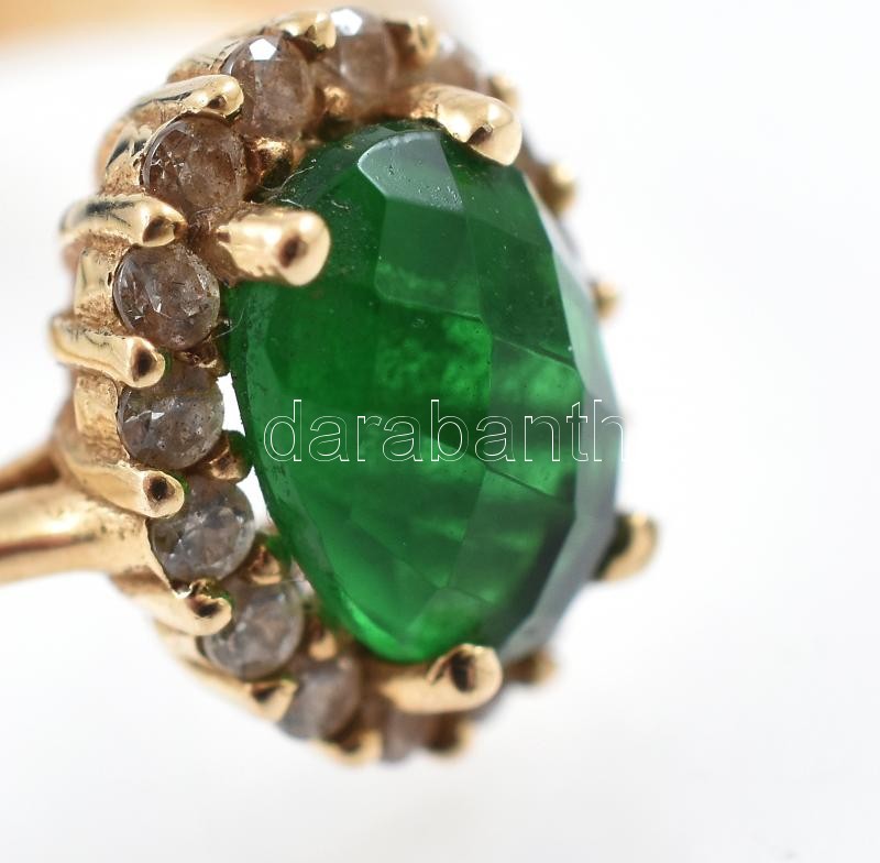 Arany (Au) 14 K zöld köves gyűrű és függő, jelzett, méret: 54, 1,6×0,6 cm, bruttó: 3,2 g