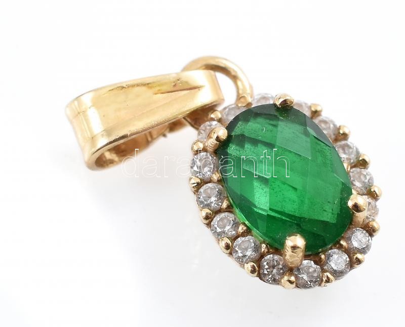 Arany (Au) 14 K zöld köves gyűrű és függő, jelzett, méret: 54, 1,6×0,6...