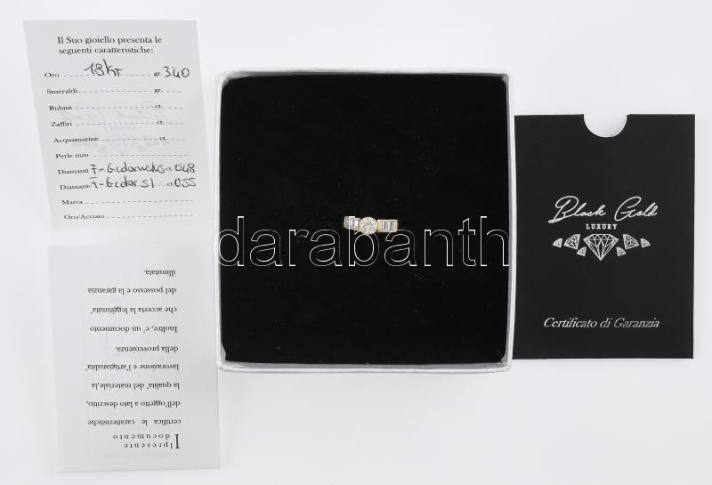 Arany (Au/18k) gyűrű 5 db gyémánttal ékítve. 0,55 ct, SI / Fg, 0,48 WS 1/F-G. Br 3,4 g, m: 51. Certifikáttal, eredeti dobozában.