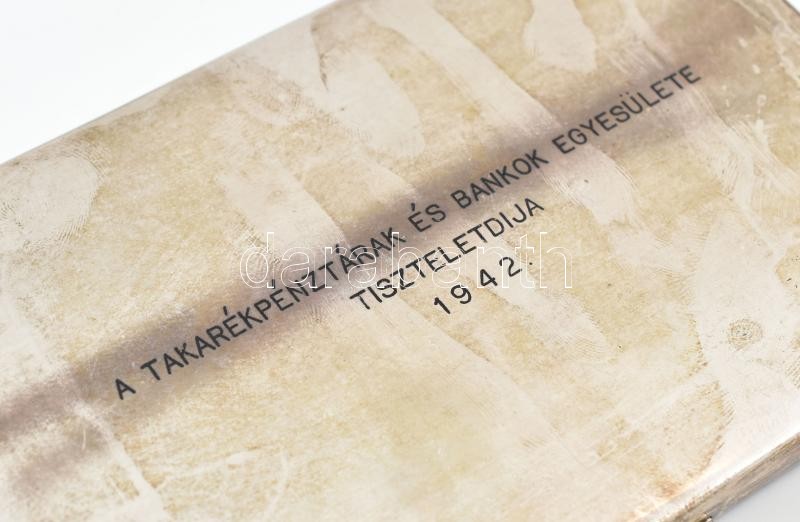 Ezüst (Ag) cigaretta tárca, 1942, jelzett, 8,5x12,5 cm, nettó: 186g