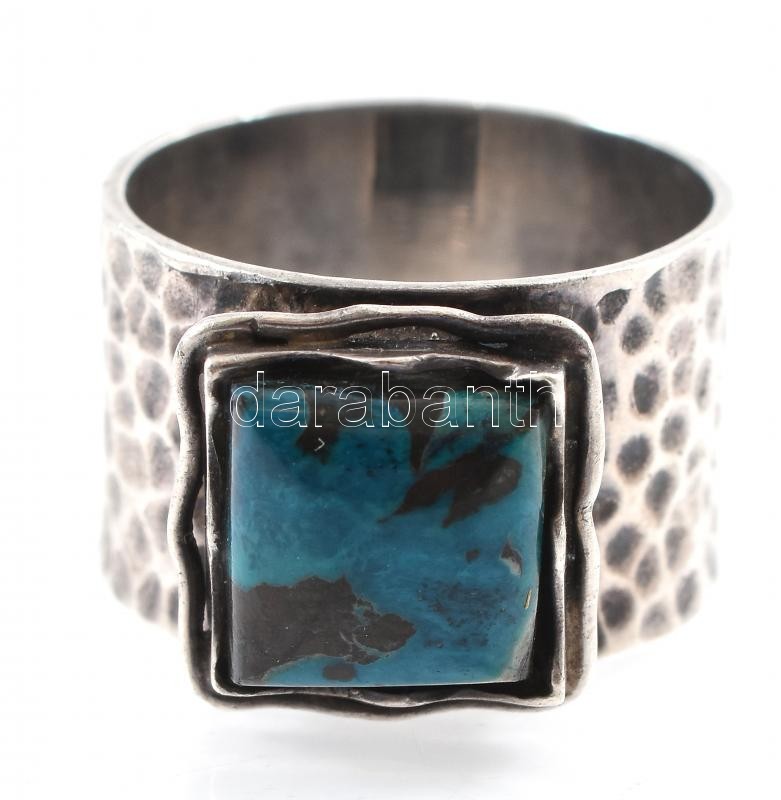 Ezüst (Ag) gyűrű türkizzel, m: 58 jelzett, bruttó:7,9g