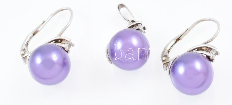 Ezüst(Ag) fülbevalópár és függő lila gyönggyel, jelzett, bruttó: 7,69 ...