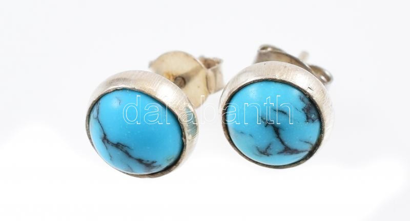 Ezüst(Ag) fülbevalópár türkizzel, jelzés nélkül, d: 0,8 cm, bruttó: 1,...