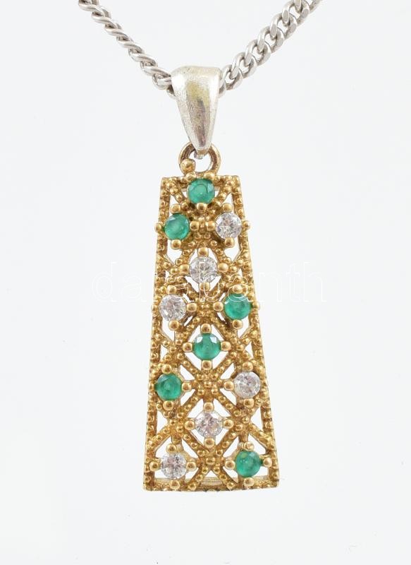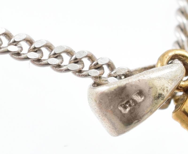 Ezüst(Ag) nyaklánc köves medállal, jelzett, h: 44 cm, bruttó: 6,7 g