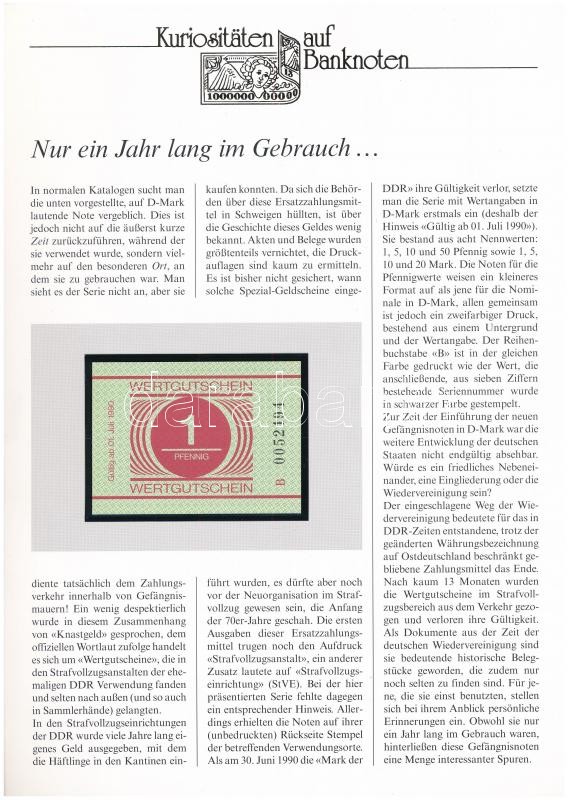 Description: Német Demokratikus Köztársaság 1990. 1pf börtönpénz, német nyelvű "Kuriositäten auf Banknoten" tájékoztatólappal T:I