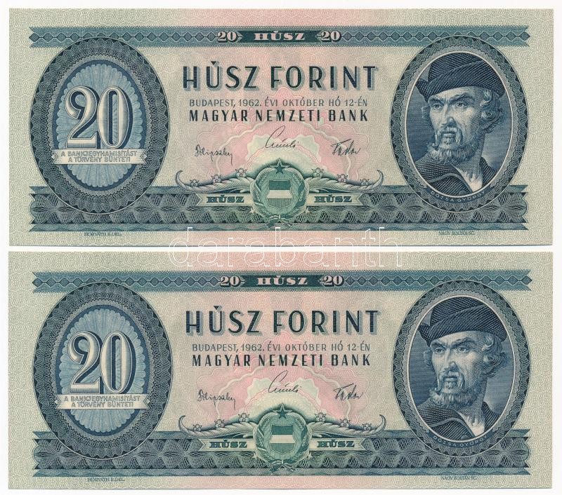 1962. 20Ft (2x) sorszámkövetők "C 197 089853 - C 197 089854" T:I,I-