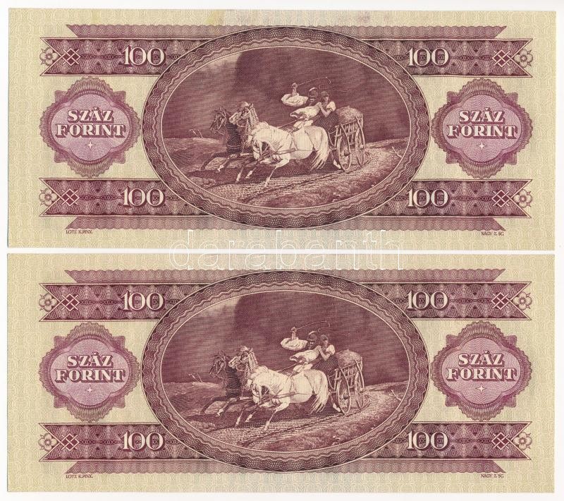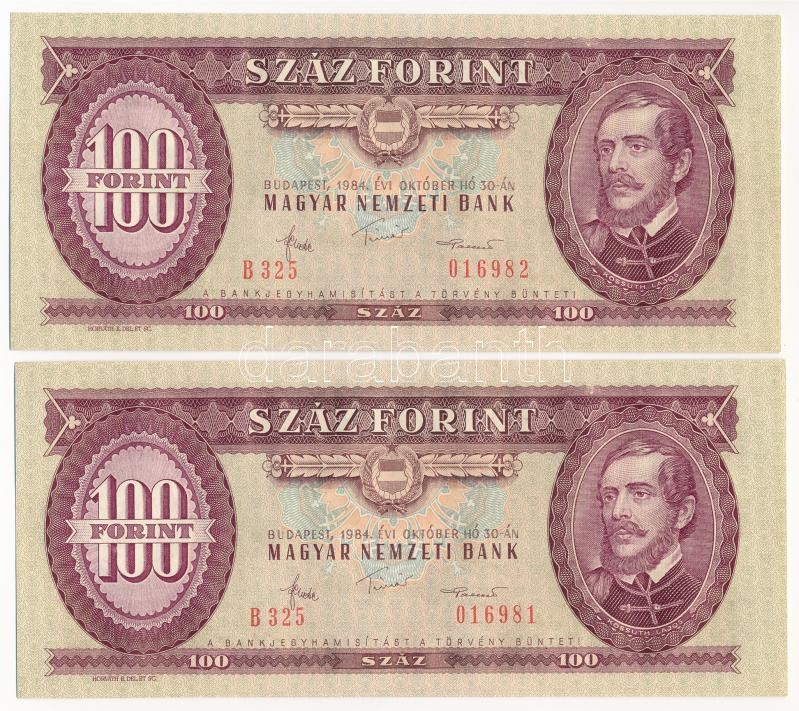 1984. 100Ft (2x) "B 325 016981 - B 325 016982" sorszámkövető...