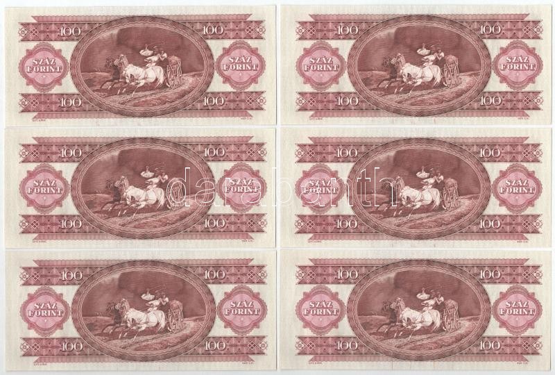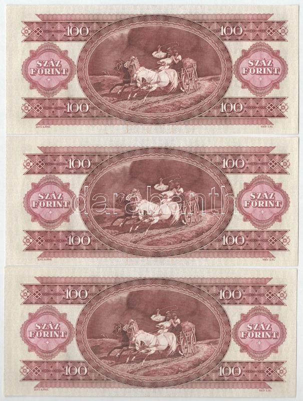 1992. 100Ft (9x) háromszor hármasával sorszámkövetők, a sorszámkövető részek között 1-1 ugrással "B 298 057613 - 057615"; "B 298 057617 - 057619"; "B 298 057621 - 057623" T:I,I-