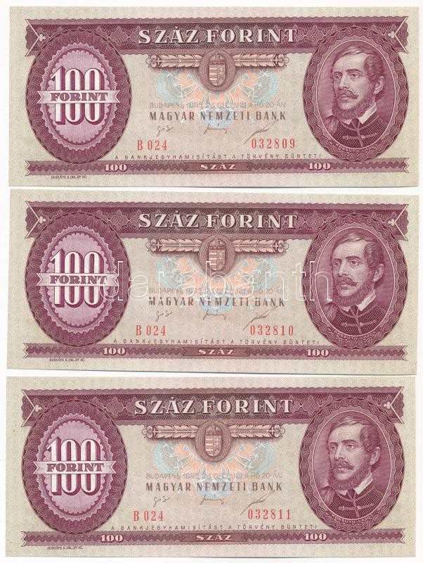 1995. 100Ft (3x) "B 024 032809 - B 024 032811" sorszámkövető...